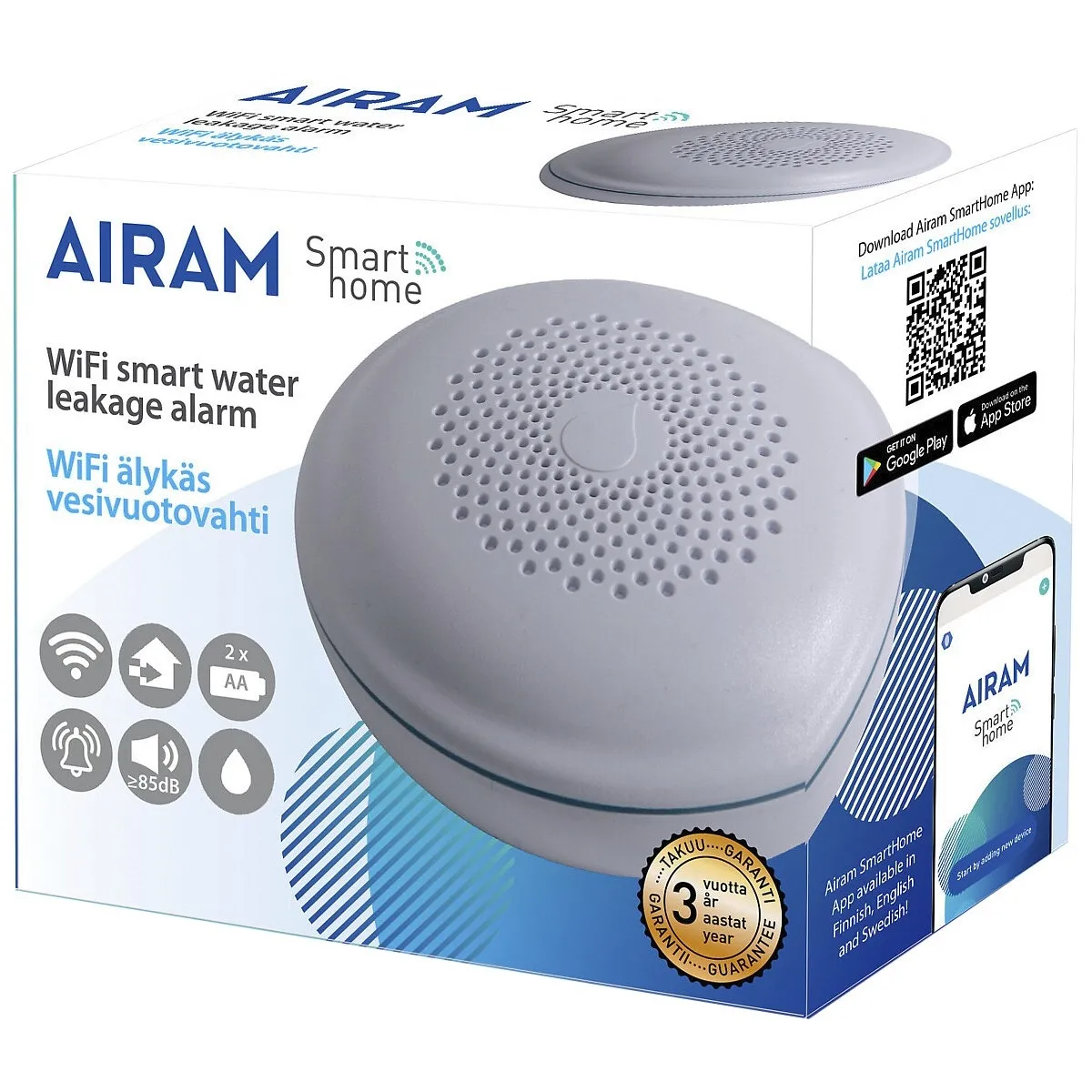 - Airam SmartHome vattenläckagevakten kan användas uppkopplad till Airam SmartHome-appen eller utan den