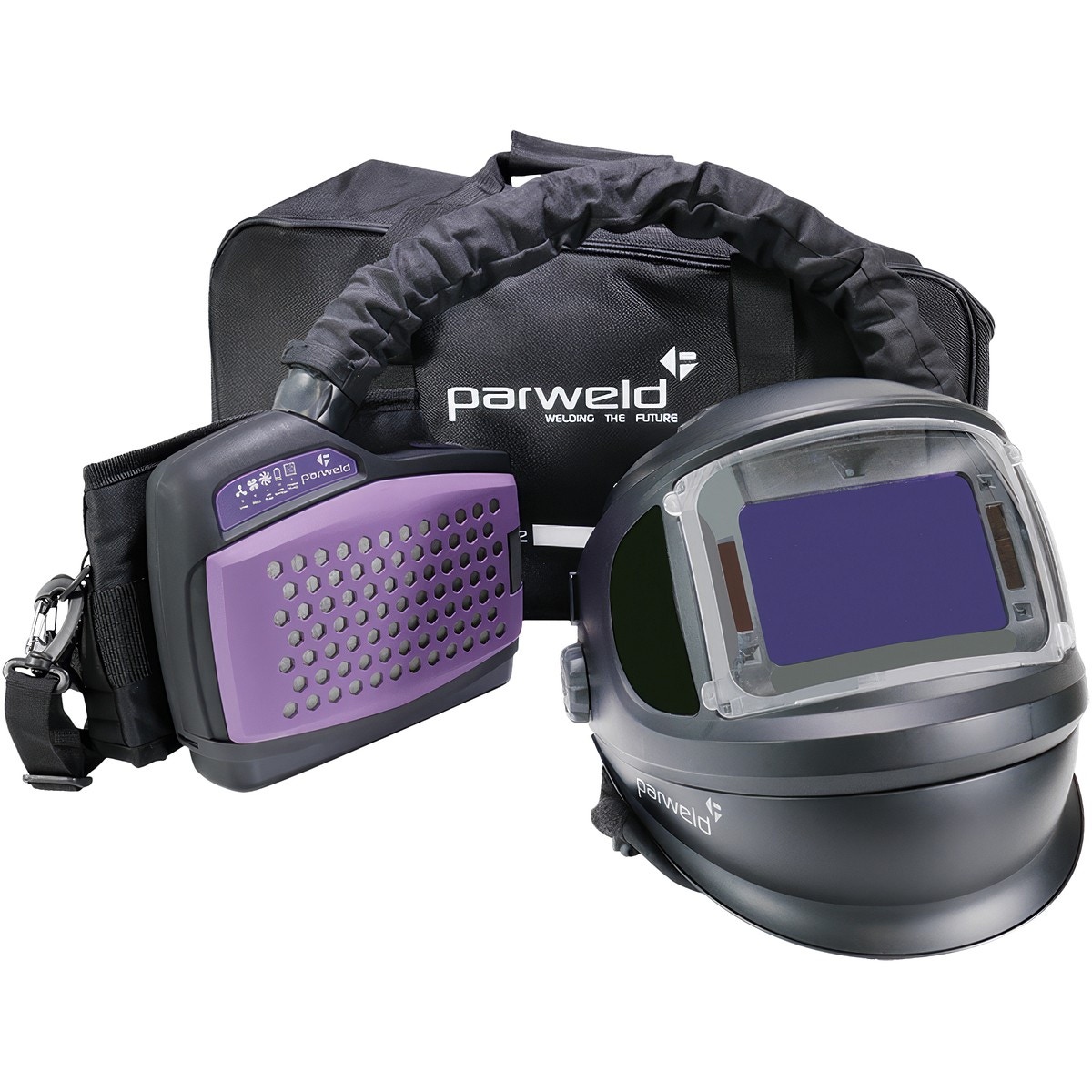 - Parweld XR943A PAPR (Powered Air Purifying Respirator) är en avancerad friskluftshjälm för svets- och sliparbete i miljöer med partikelföroreningar- Systemet innehåller ett uppfällbart svets- och slipvisir, en tydlig statusdisplay samt en borstlös, extremt tystgående motor med tvåstegs luftflödesreglering- Enheten är utrustad med hörbara och vibrerande varningssignaler, ett bekvämt bälte med avtagbara axelremmar samt ett löstagbart litiumjonbatteri med upp till 10 timmars drifttid