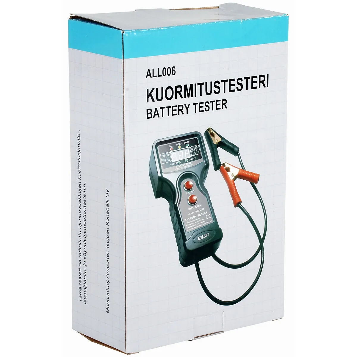 - testar batteriets skick, mäter samtidigt både batteriets utström samt spänningsnivå