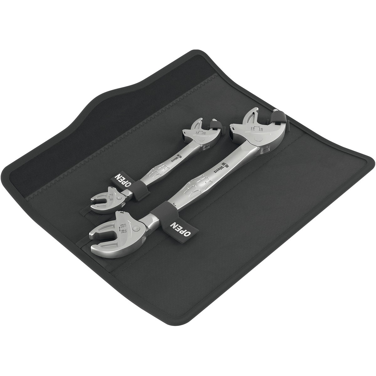 - Självinställande U-dubbelnycklar- För sexkantsskruvar och -muttrar med nyckelvidd 7,0 - 8,0 - 9,0 - 10,0 - 11,0 - 12,0 - 13,0 - 14,0 - 15,0 - 16,0 - 17,0 - 18,0 - 19,0 (metriska mått)- För sexkantsskruvar och -muttrar med nyckelvidd 1/4" - 5/16" - 3/8" - 7/16" - 1/2" - 17/32" - 9/16" - 19/32" - 5/8" - 11/16" - 3/4" (tummått)