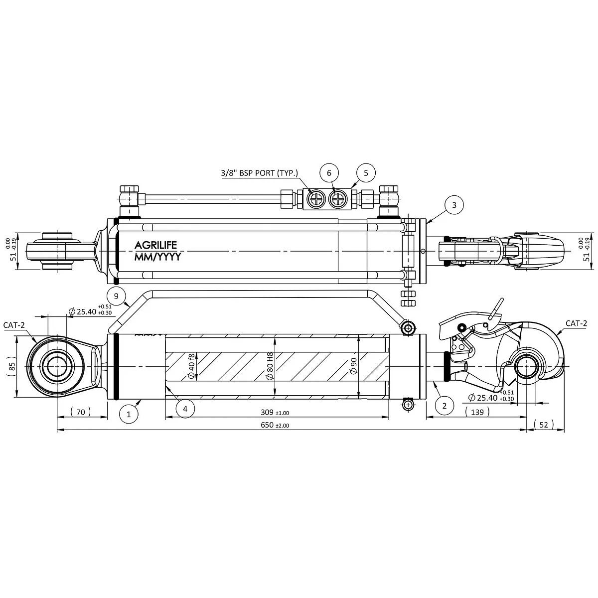 Hydraulisk Toppstag 80/40/309 Kat2-Kat2 Hake