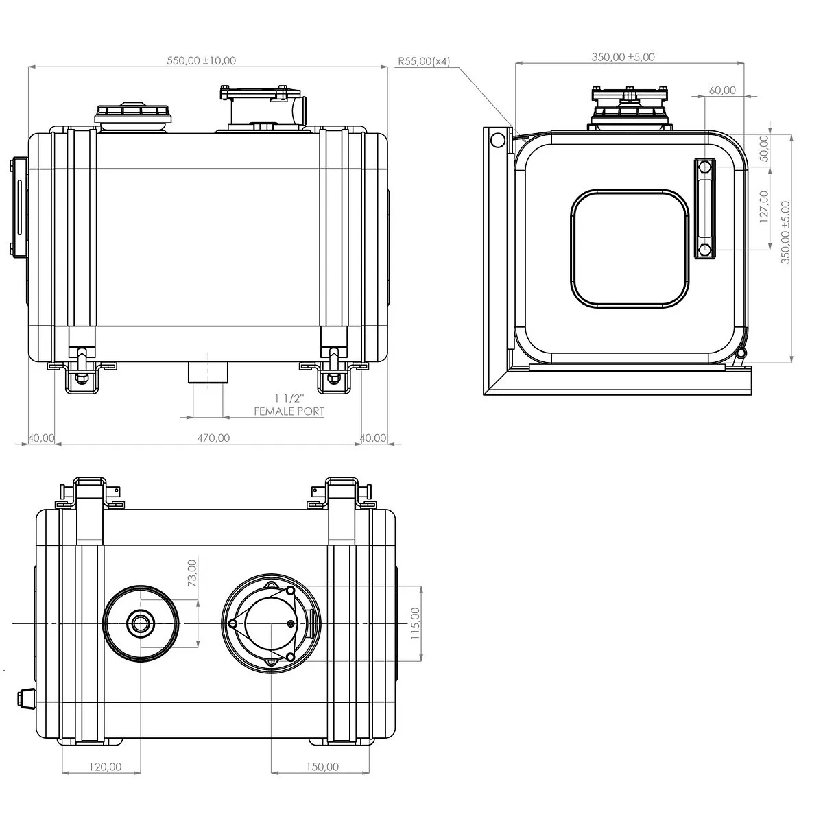 Hydrauloljetank 60L Aluminium