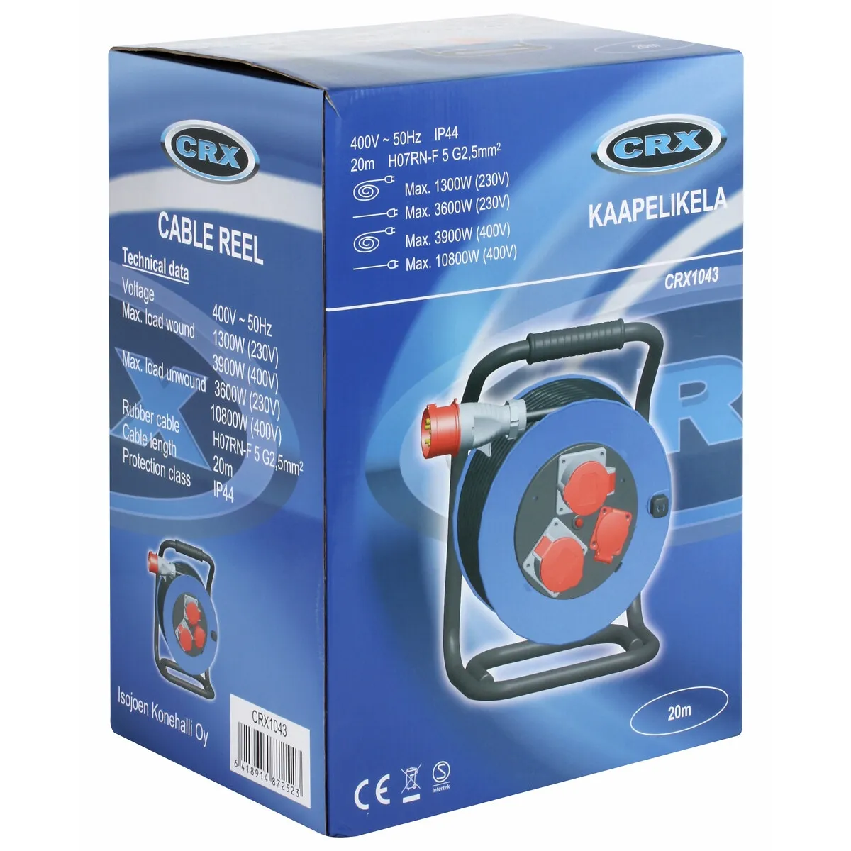 Kabelvinda 20M Gummi 1X230V / 2X400V/16A
