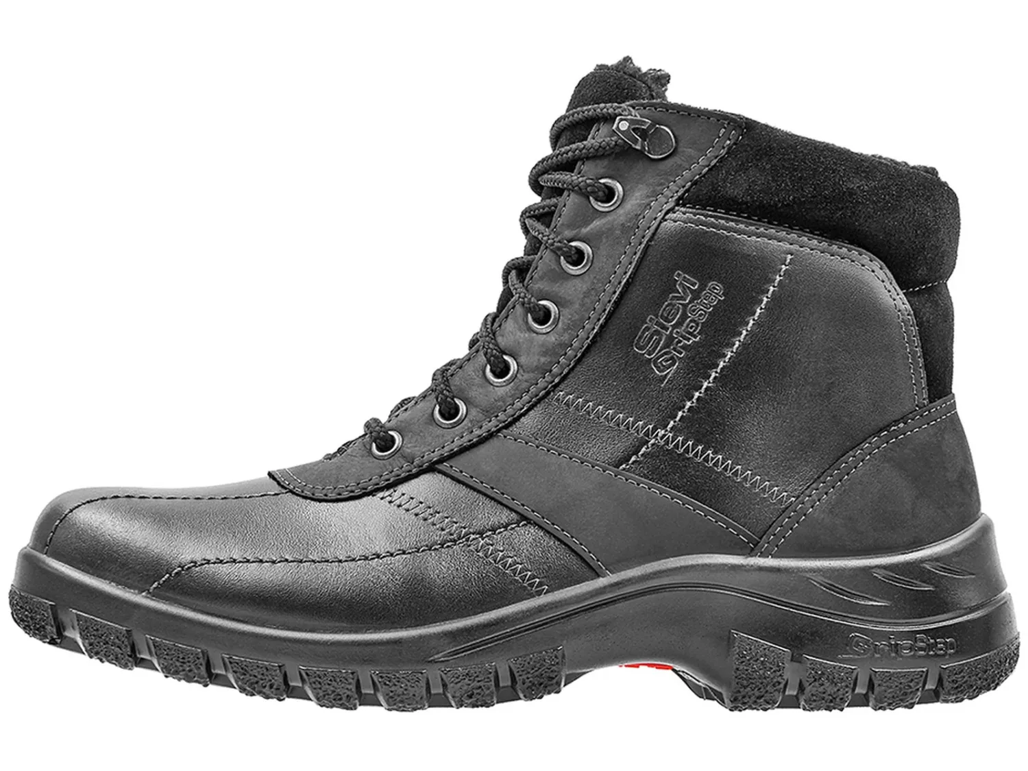 Varmfodrad ankelmodell med GripStep® friktionssula. I sulkonstruktionen GripStep® förenas friktionsegenskaperna hos PU och TR-gummi för maximering av greppet. Detaljerna i ovandelen av skinn är genomförda med nubuck och prydnadssömmar. Spaltläder vid kanten av skaftet. Den med ett aluminiummembran försedda lössulan håller kylan utanför skon och värmen kvar inuti. Snören och dragkedja.