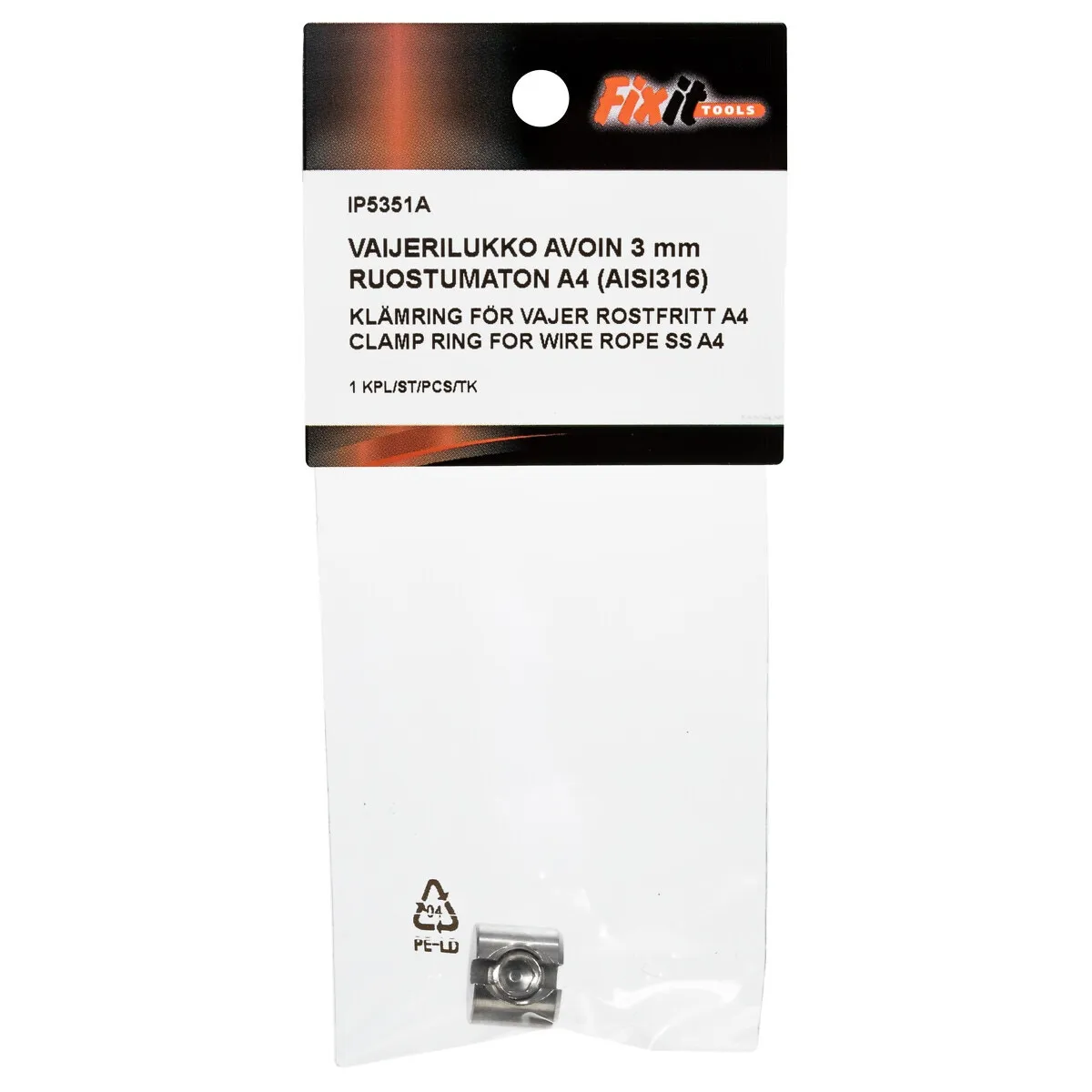 - öppen klämring för vajer, rostfritt stål A4 / Aisi 316
