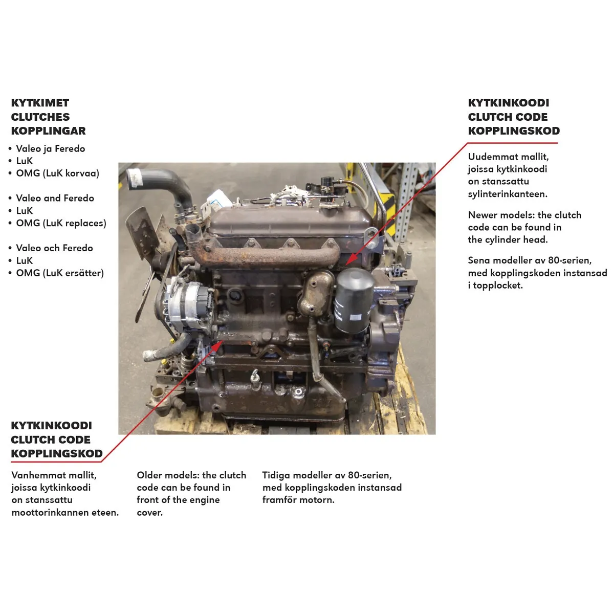- i modeller 550, 580, 600, 640, 680 och 780 har två olika modeller av kopplingsaxlar förekommit, kontrollera att de passar före montering