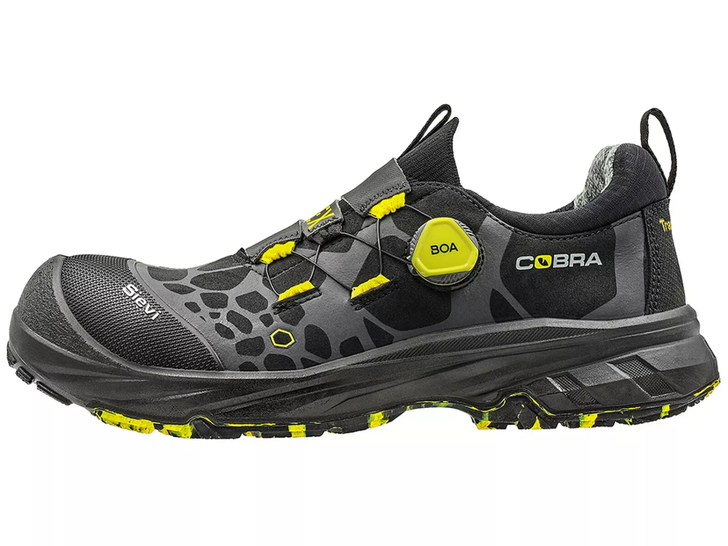 Nya kollektionen Cobra med komposittåhätta och spiktrampskydd i stål. GORE-TEX®-fodret är fortfarande ett unikt fodermaterial på marknaden, ett material som låter foten andas, men samtidigt håller fukten utanför skon.