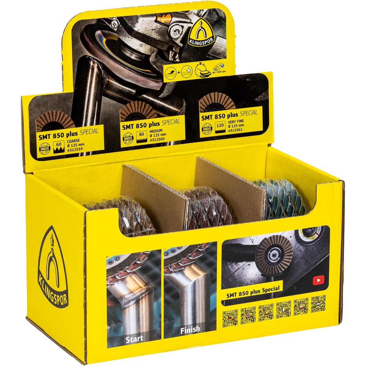 - 15-delars Klingspor SMT 850 plus Special lamellslipskivsats för rostfritt stål- SMT 850 plus Special är en oslagbar produkt för bearbetning av TIG-svetsar- SMT 850 plus Special är designad för professionella användare och används överallt där efterbehandling av svetsfogar behövs efter TIG-svetsning, såsom i metallverkstäder, efter rörsvetsning eller inom maskin- och anläggingsteknik
