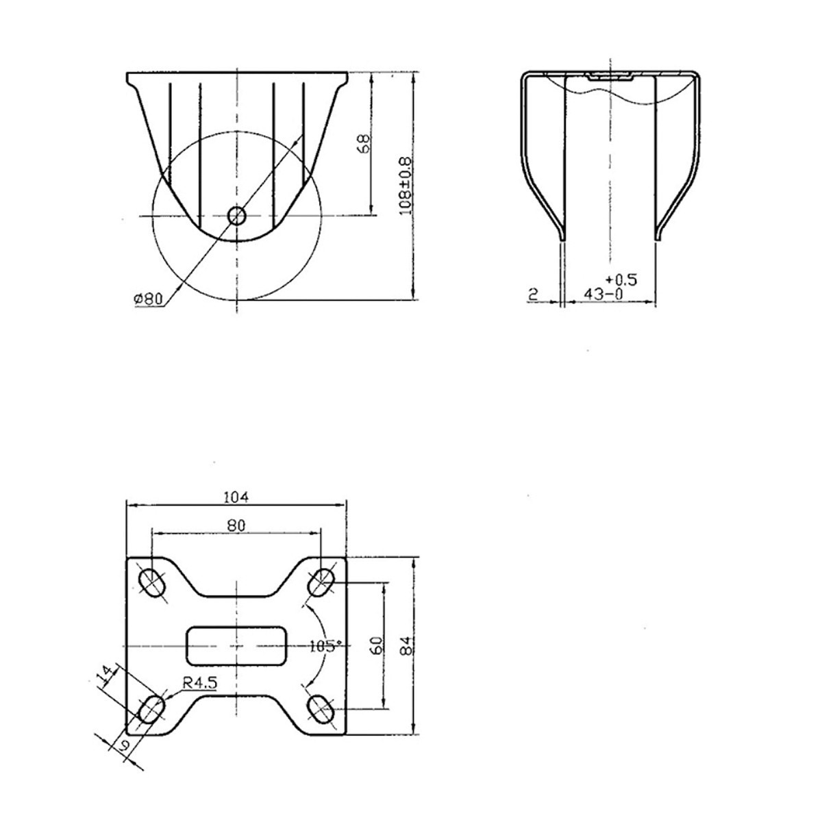 - hjul Ø 80 x 43 mm