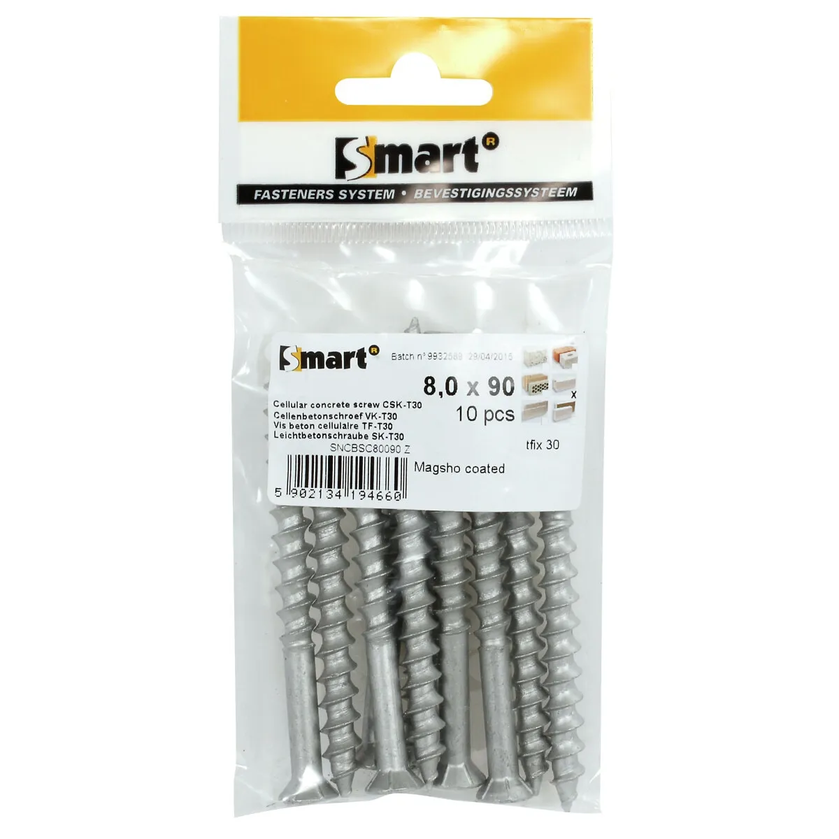 Lättbetongskruv 8X90Mm (30Mm) 10St Tx30