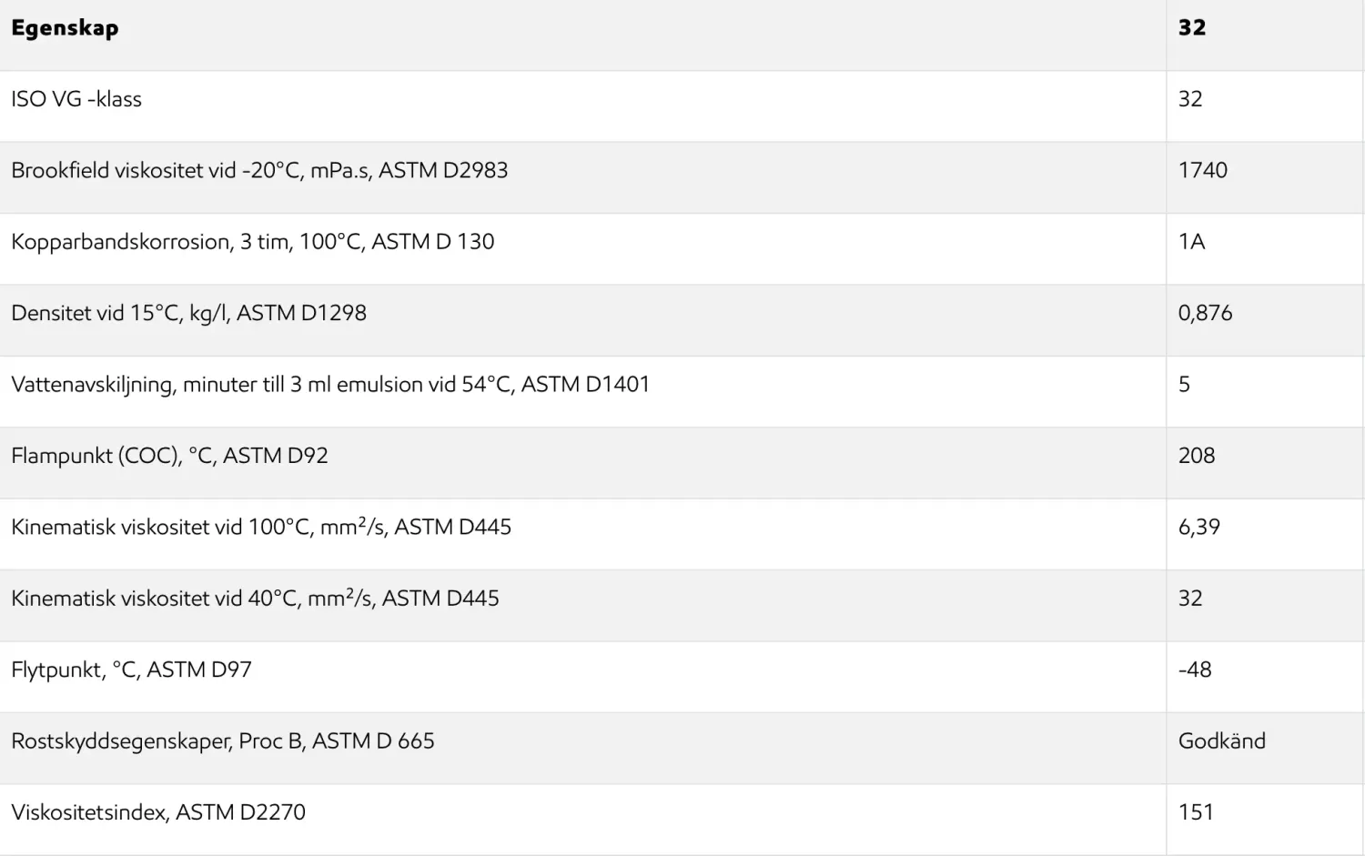 - lägsta flyttemperatur (ASTM D97): -48°C