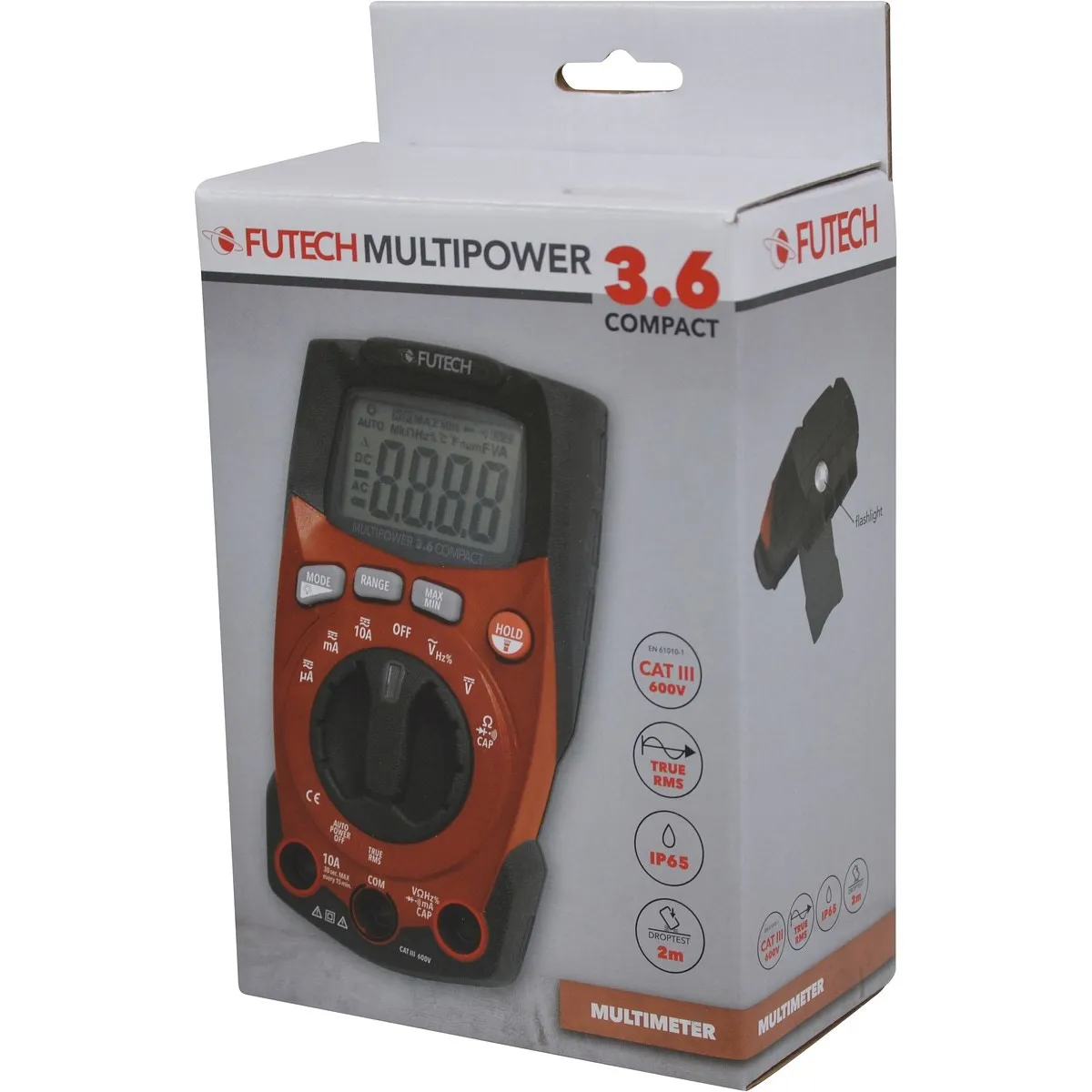 - Futech Multipower 3.6 Compact är en kompakt digital TRUE RMS multimeter med stor och tydlig display
