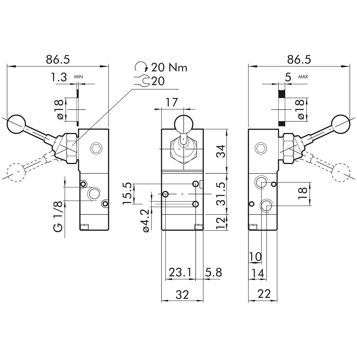 Pneumatisk Ventil 3/2 1/8 90 Vipp/Vipp Mav23Leboo