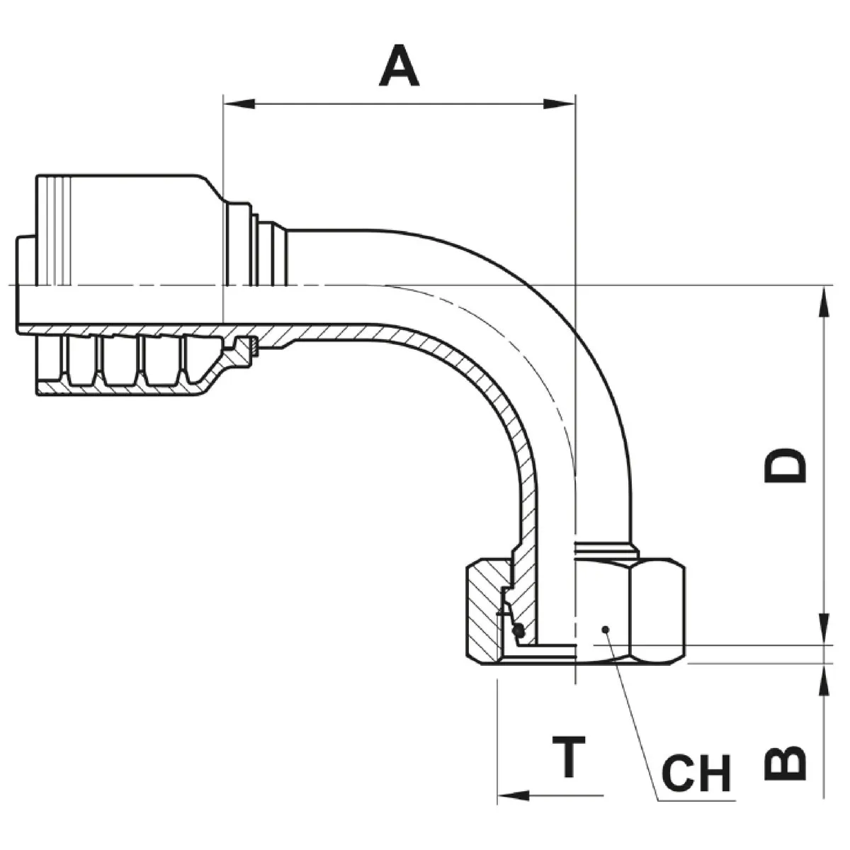- 90° vinkel / invändig gänga / DKO tätningskona 24°