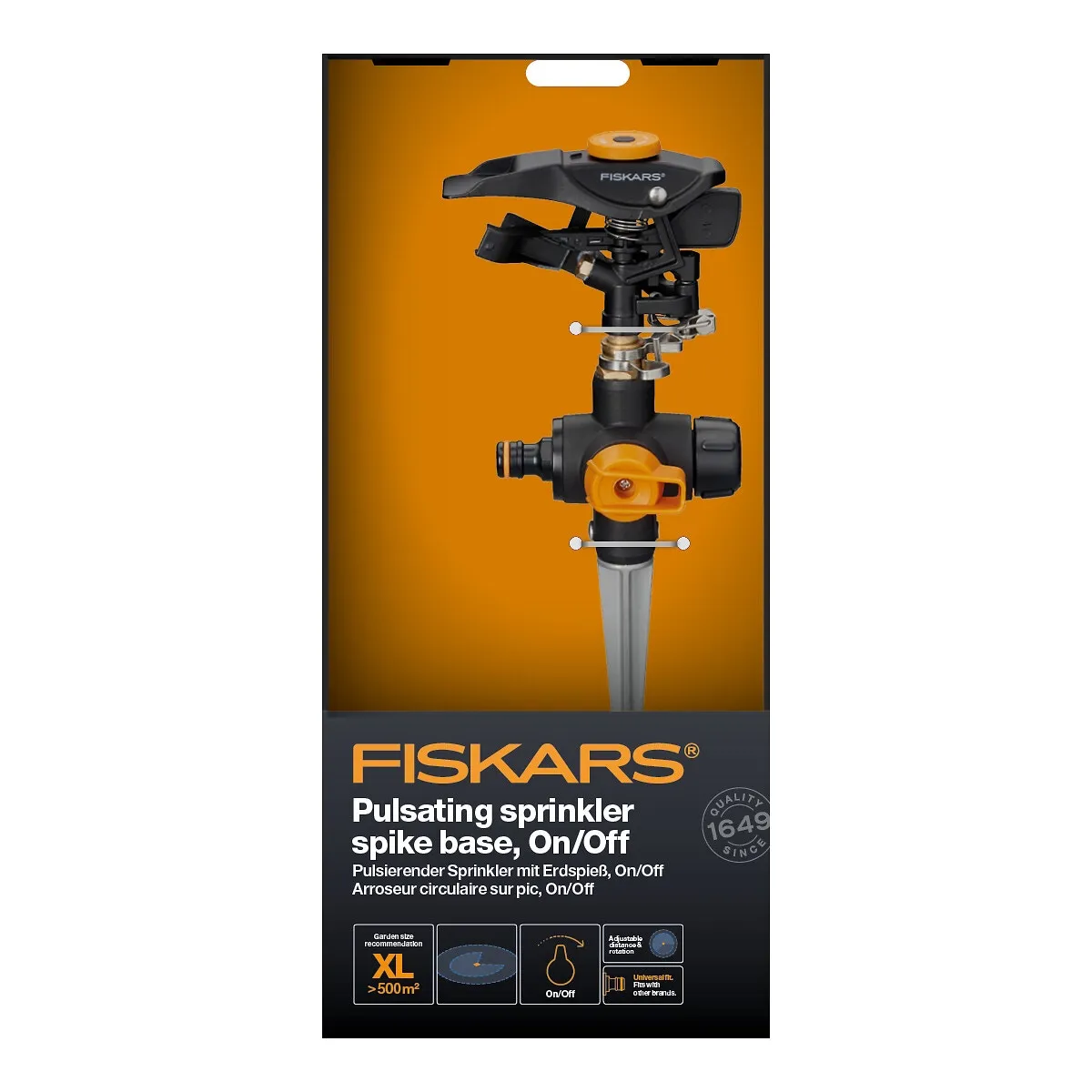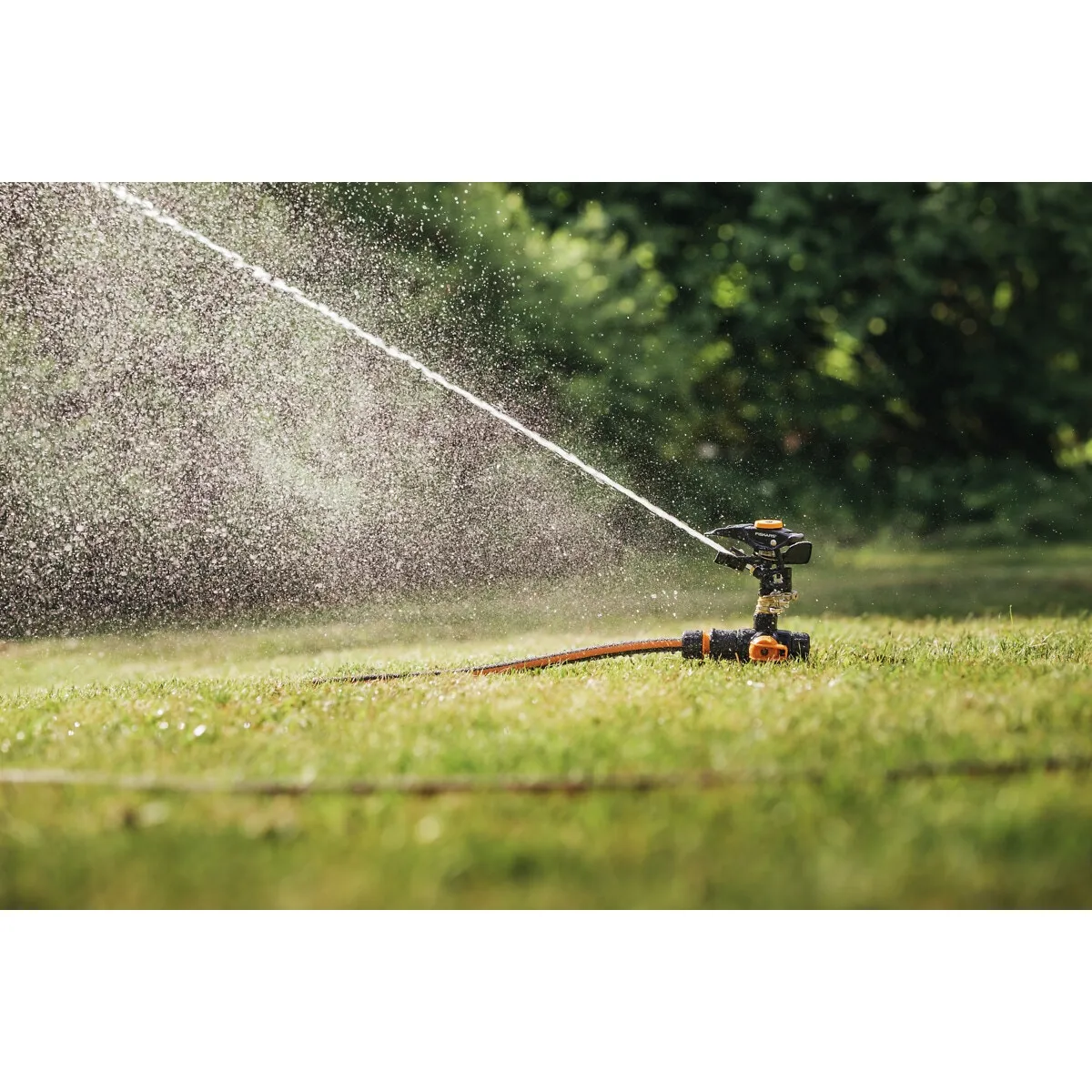 - vattenspridare med inbyggt ON/OFF vred som gör det möjligt att stänga av vattnet direkt på vattnespridaren, så att du enkelt kan justera vilket område som ska vattnas