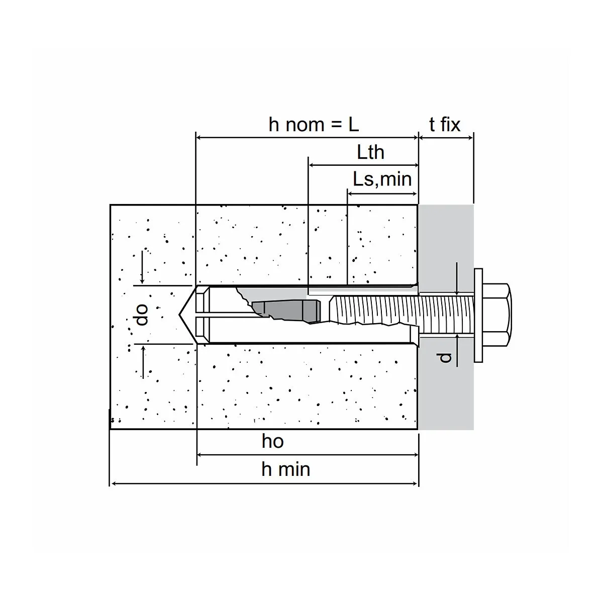 - bult min. längd (Ls,min) 16 mm + tjocklek på del som fästs (Tfix)