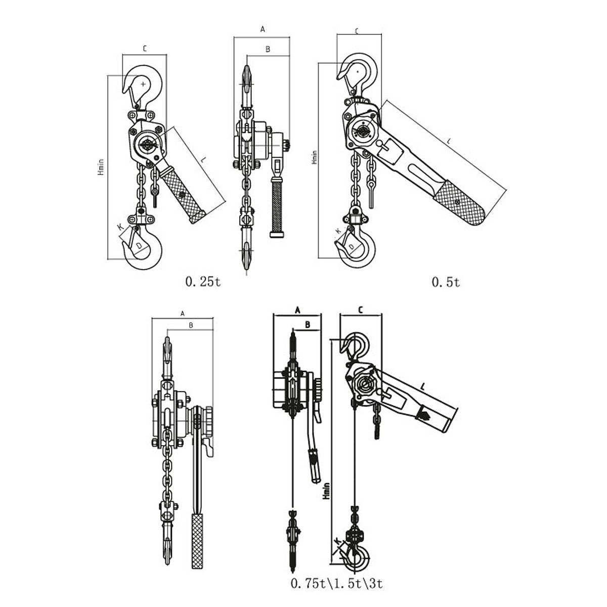 - Lyftkraft 500 kg- Lyfthöjd 3 m- Kedja 5 x 15 mm