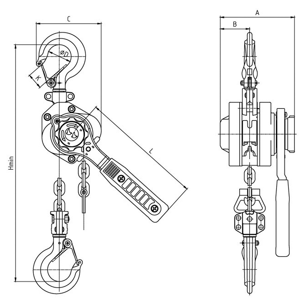 - Lyftkraft 500 kg- Lyfthöjd 3 m- Kedja 5 x 15 mm