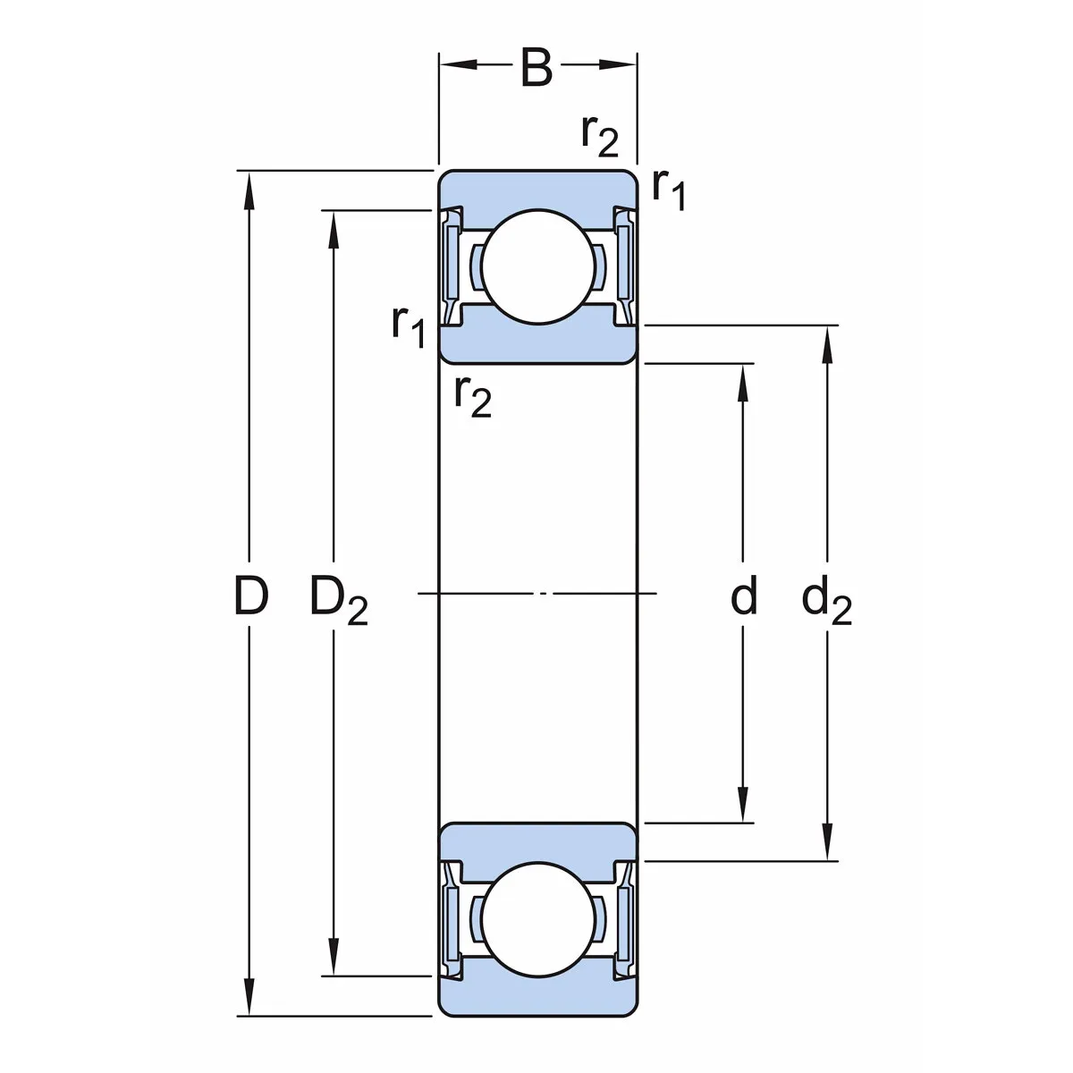 - diametern för släppningen av innerringens skuldra (d2) 13,9 mm