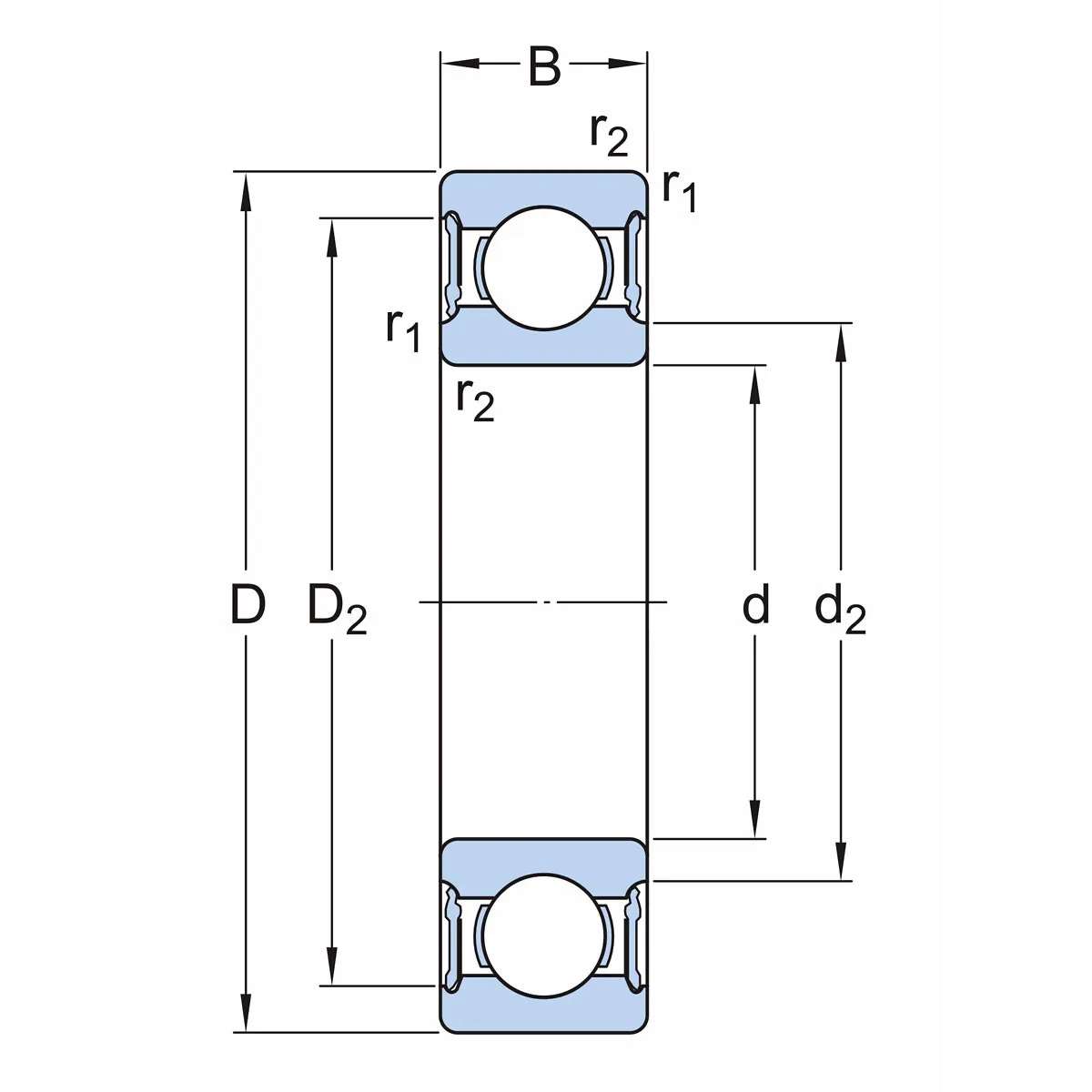 - diametern för släppningen av innerringens skuldra (d2) 14,1 mm