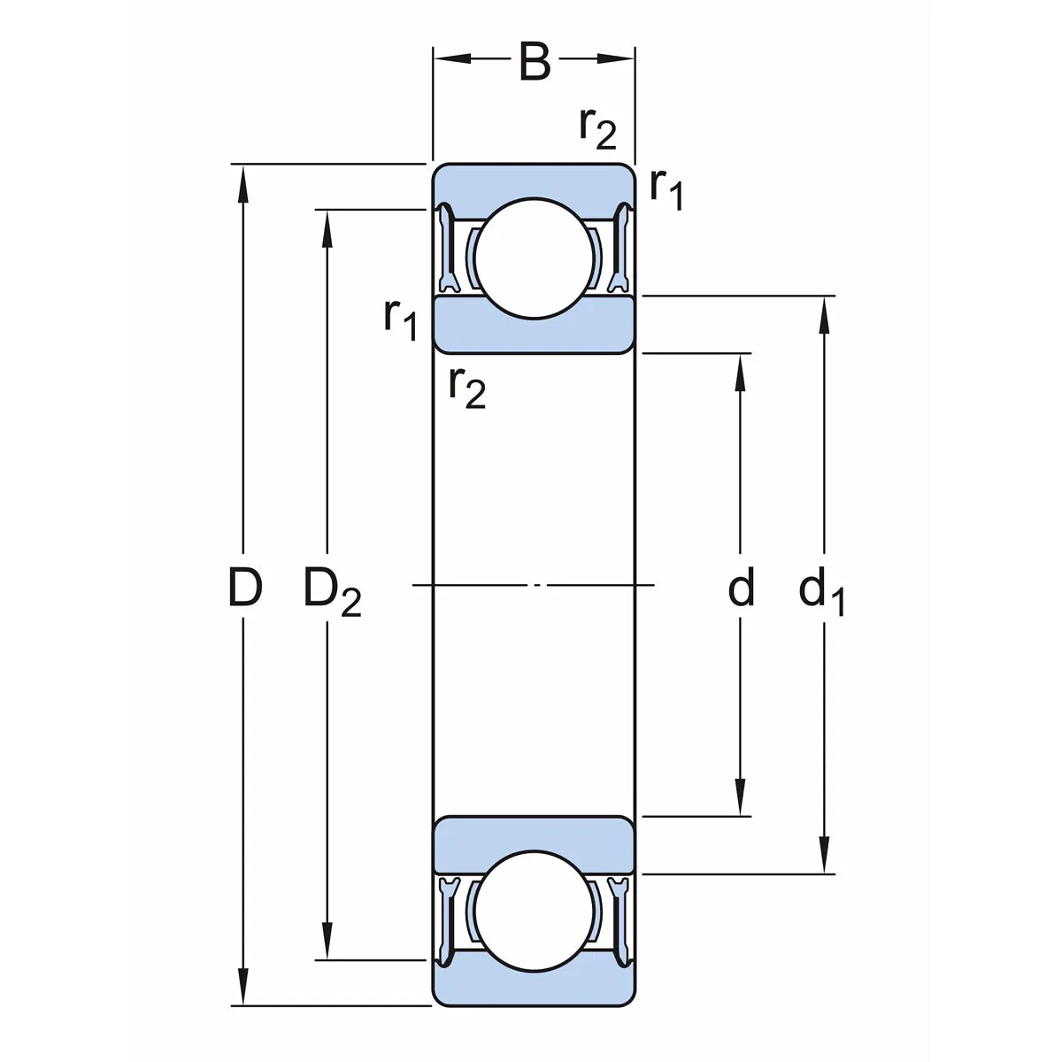 - ytterringens fasmått (r1,2) min. 0,6 mm