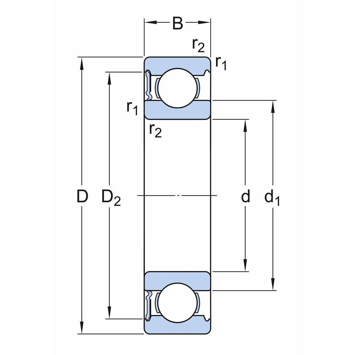 - diameter för släppningen av ytterringens skuldra (D2) 69,8 mm
