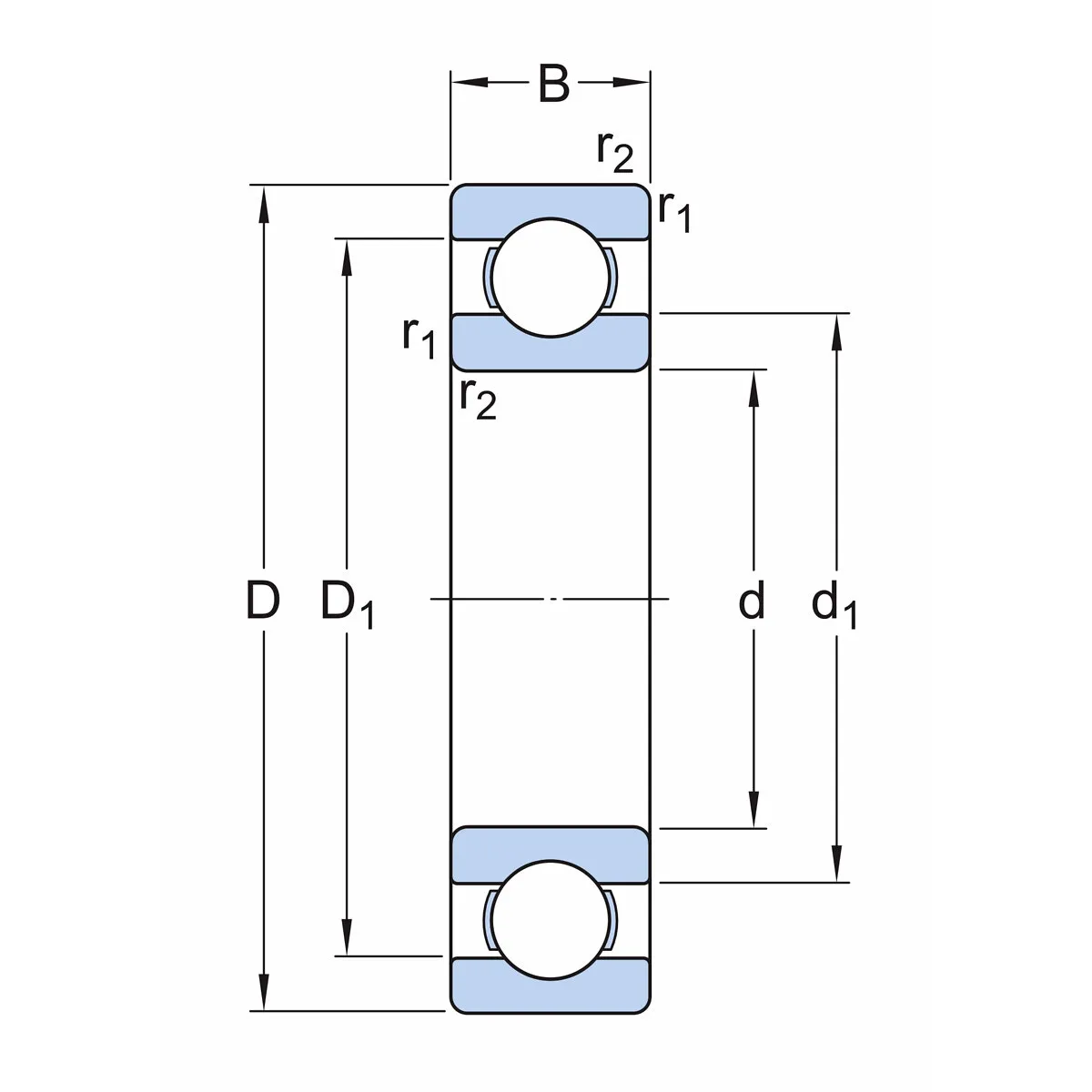 - innerringens skulderdiameter/husbrickans inre diameter (D1) 65 mm
