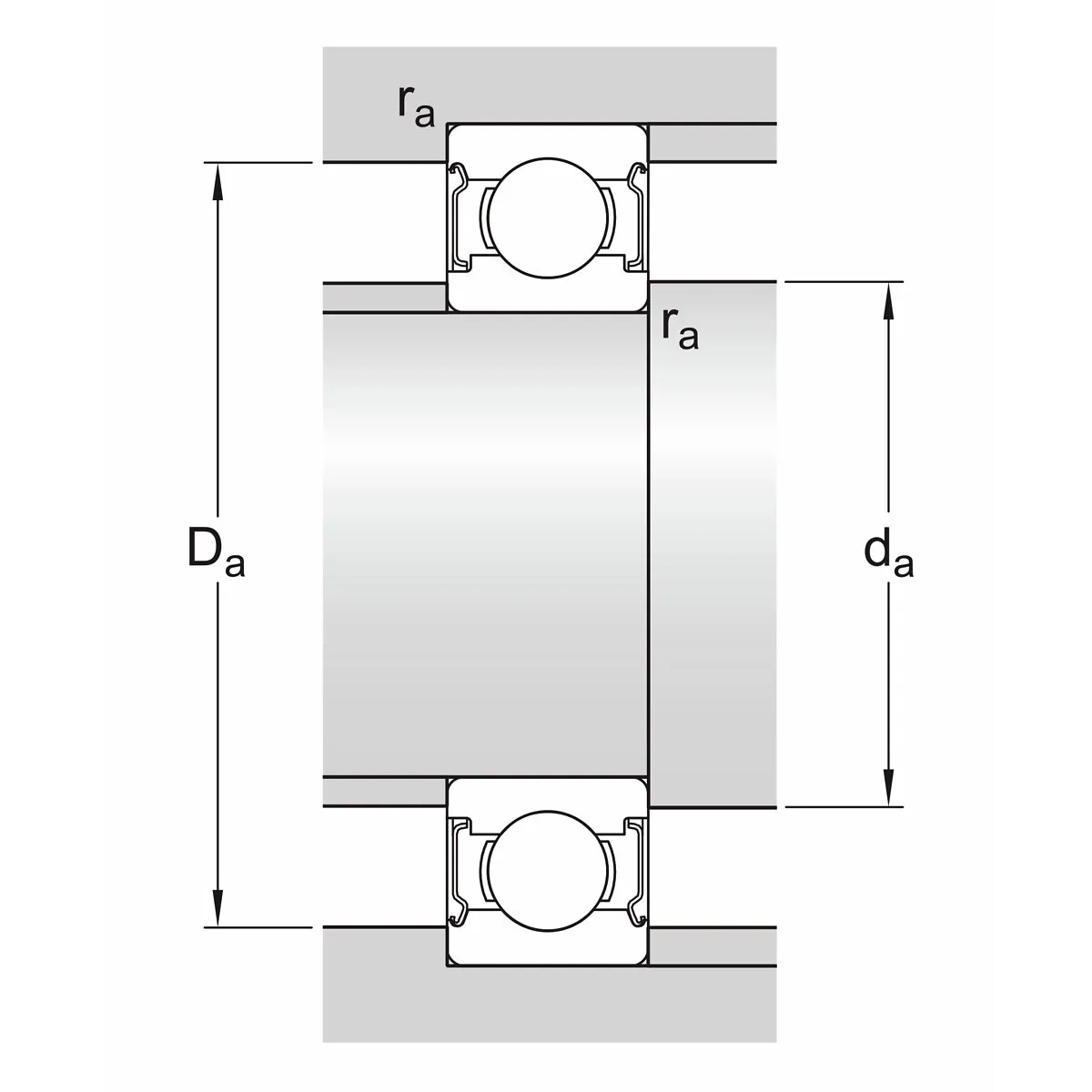 - diametern för släppningen av innerringens skuldra (d2) 8,5 mm