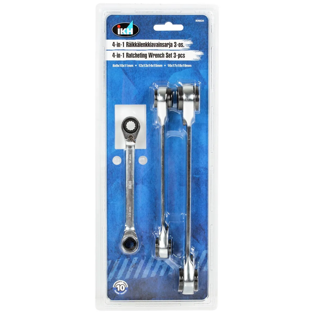 - varje nyckel har 4 olika storlekar: 8 x 9 x 10 x 11 mm - 12 x 13 x 14 x 15 mm - 16 x 17 x 18 x 19 mm