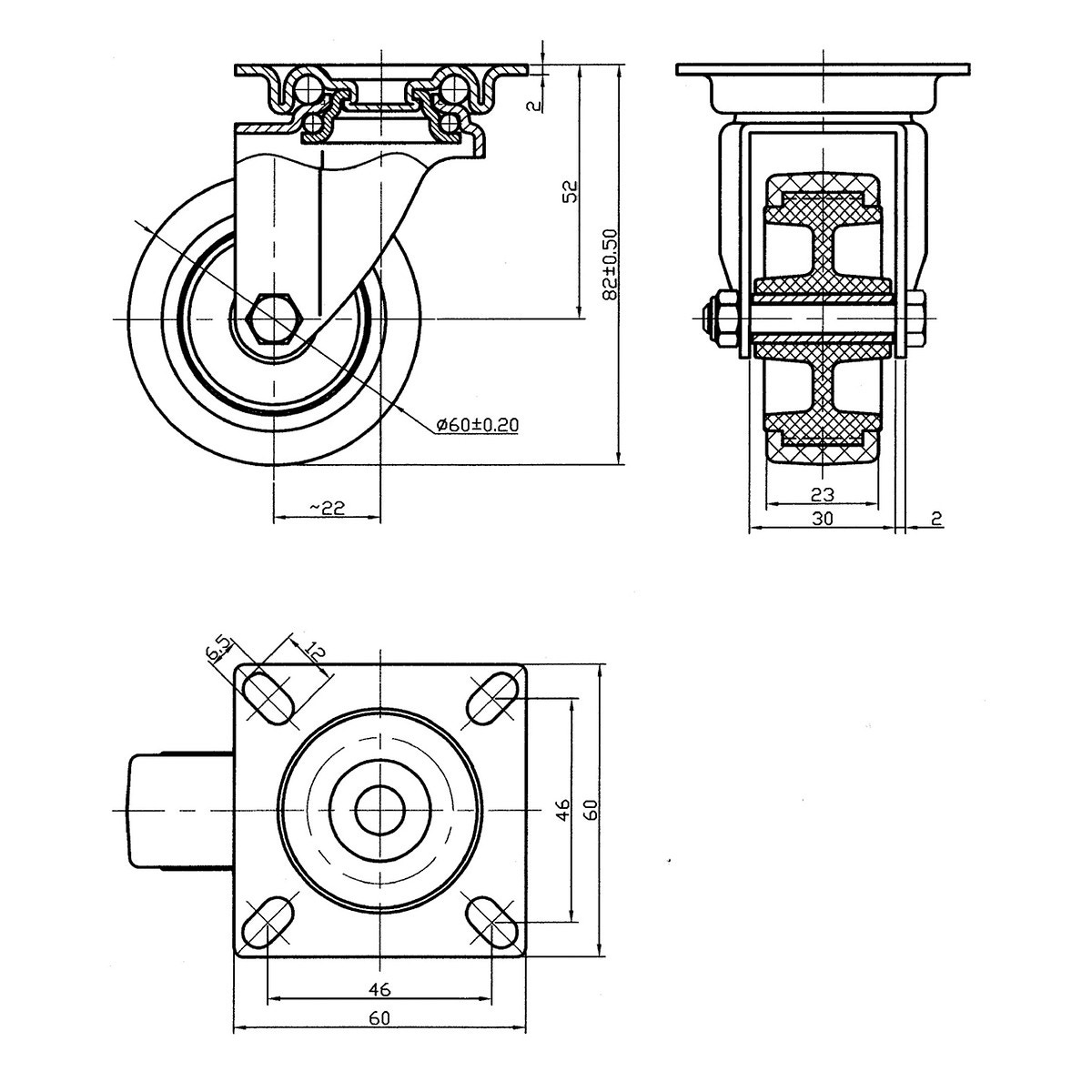 Svängbar Hjul 60Mm Termoplastisk Gummi