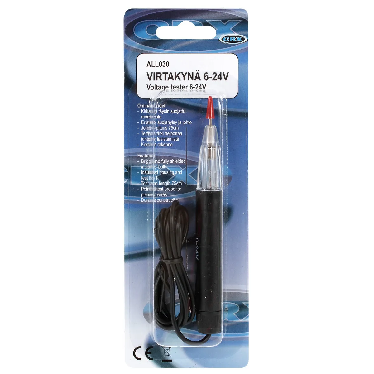 - lämpar sig för testning av bilens lampor, säkringsdosor, batterier, kablar osv.